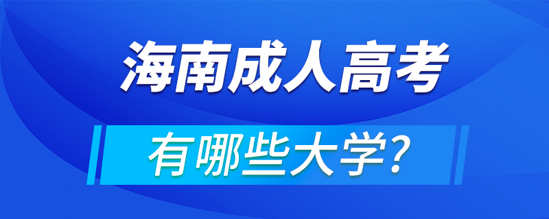 海南成人高考可以考的大學有:海南大學、海南師范大學、海南醫(yī)學院、??诮?jīng)濟學院、海南熱帶海洋學院、瓊臺師范學院、海南職業(yè)技術(shù)學院、三亞城市職業(yè)學院、海南工商職業(yè)技術(shù)學院、三亞航空旅游職業(yè)學院、三亞理工職...